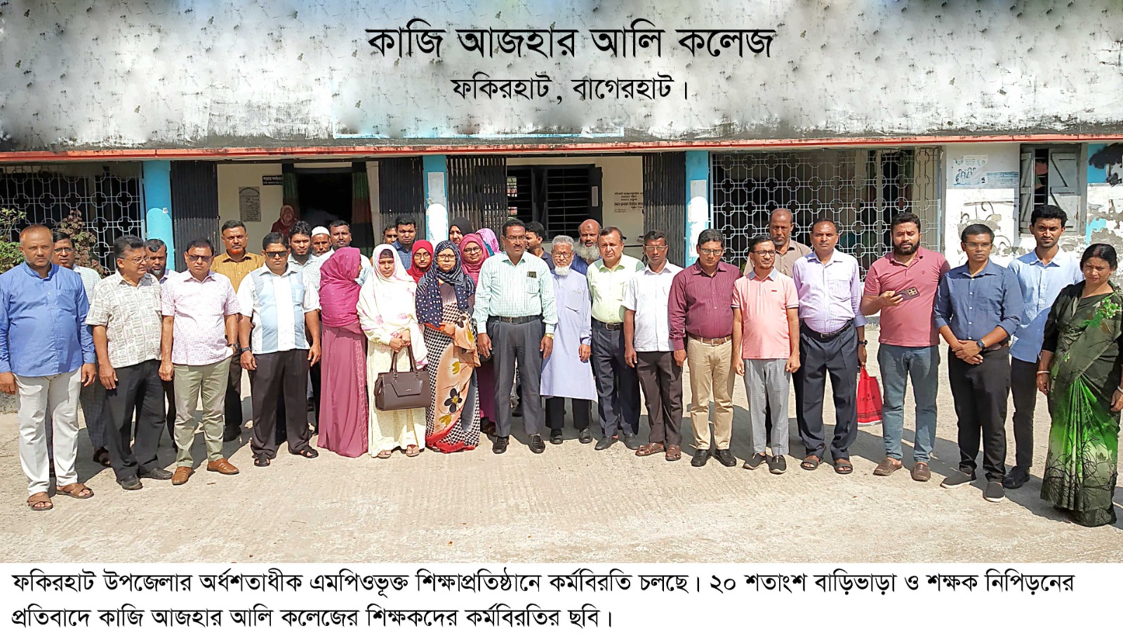 পাঠদান বন্ধ, হামলার প্রতিবাদ ও বিশ শতাংশ বাড়িভাড়ার দাবীতে ফকিরহাটে কর্মবিরতি