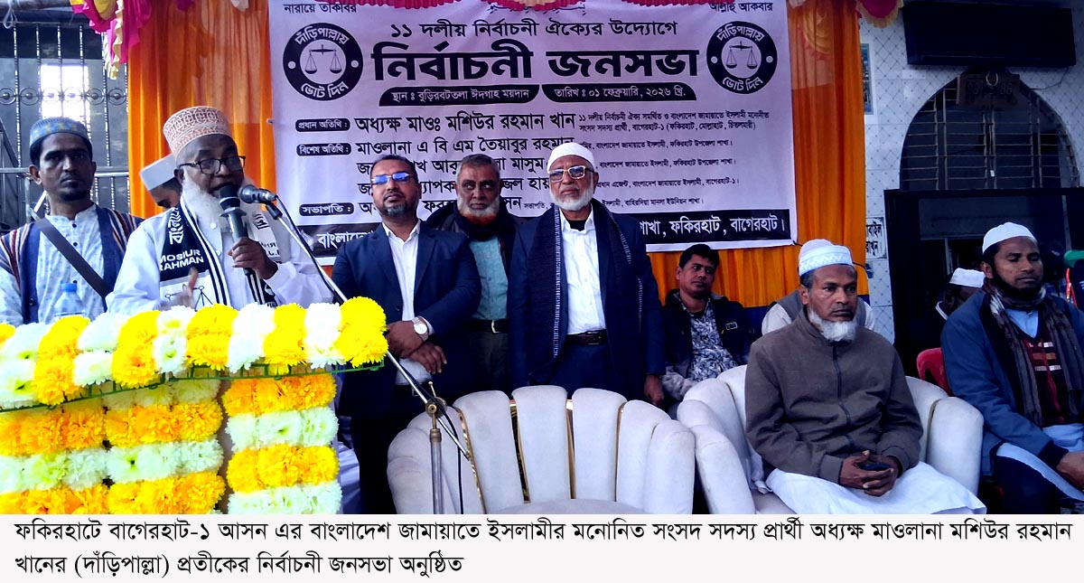 ফকিরহাটে জামায়াত প্রার্থীর নির্বাচনী জনসভা অনুষ্ঠিত