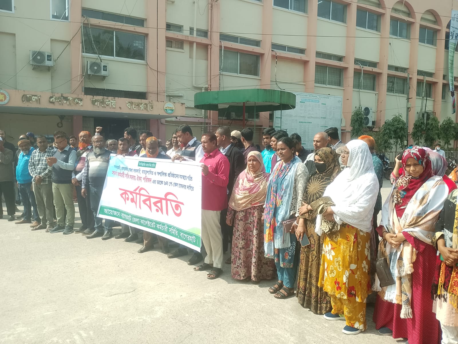বৈষম্য মুক্ত নবম পে স্কেলর গেজেট ঘোষণার দাবিতে বাগেরহাটে কর্মবিরতি ও বিক্ষোভ করেছে বিচার বিভাগ ও জেলা প্রশাসনের কর্মচারীরা।