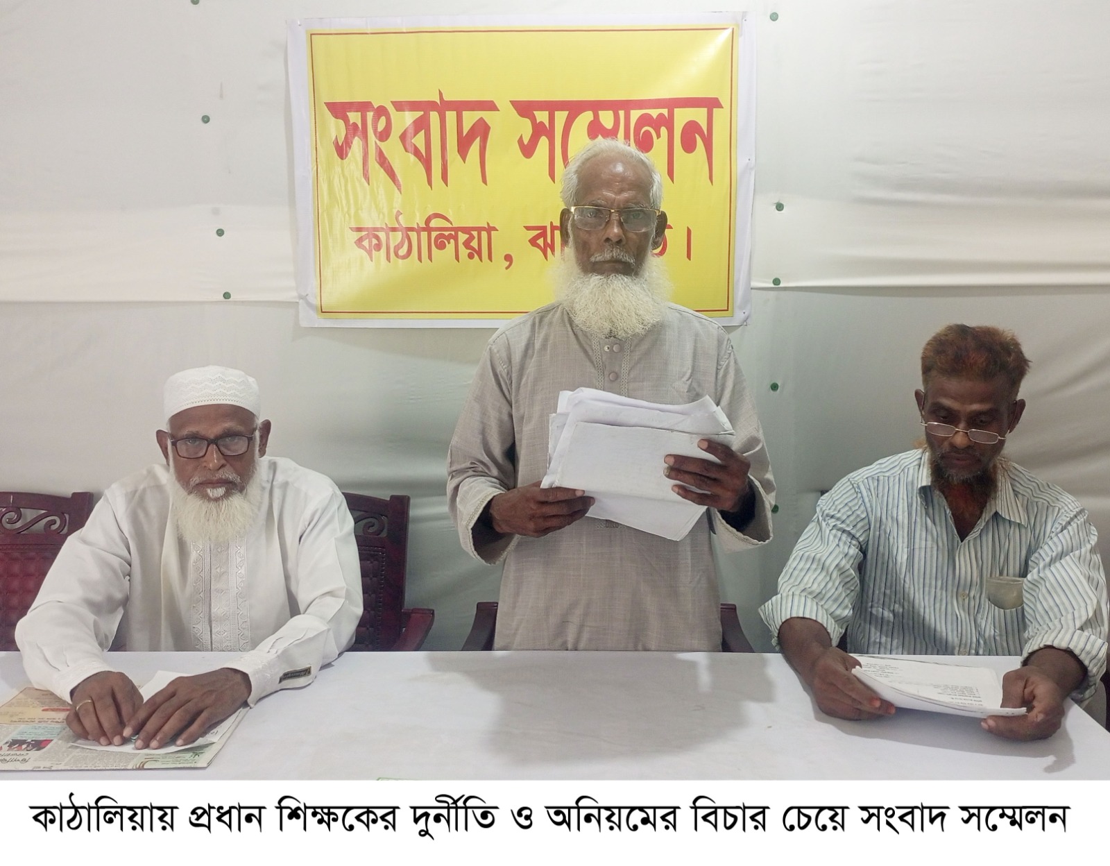 লিখিত বক্তব্যে তিনি জানান, বিদ্যালয়ের প্রধান শিক্ষক মো. শহীদুল ইসলাম খান ১৯৮৭ সালের ০৩ জানুয়ারি সহকারি শিক্ষক হিসেবে বিদ্যালয়ে যোগদান করেন। যোগদানের পর বিদ্যালয়ের তৎকালীন প্রধান শিক্ষক আব্দুল হামিদ গাজীর বিরুদ্ধে মিথ্যা মামলা দিয়ে তাকে বরখাস্ত করান। ১৯৮৮ সালে একাধিক সিনিয়র শিক্ষক থাকলেও বিধি ভঙ্গ করে ভারপ্রাপ্ত প্রধান শিক্ষককের দায়িত্ব নেন শহীদুল ইসলাম। তিনি দায়িত্ব নেওয়ার পর থেকেই দুর্নীতি, অনিয়ম, স্বেচ্ছাচারিতা, নিয়োগ বানিজ্য, স্কুলের বই, গাছ, আসবাবপত্র, বিদ্যালয়ের পুরাতন ঘর বিক্রি, বিদ্যালয়ের স্বীকৃতিপত্রে টেম্পারিং ও অর্থ আত্মসাৎসহ সীমাহিন অভিযোগ ওঠে তার বিরুদ্ধে। এছাড়া বিদ্যালয়ের জমি অন্যত্র বিক্রিতে তিনি পরিচিতির স্বাক্ষর দেন।