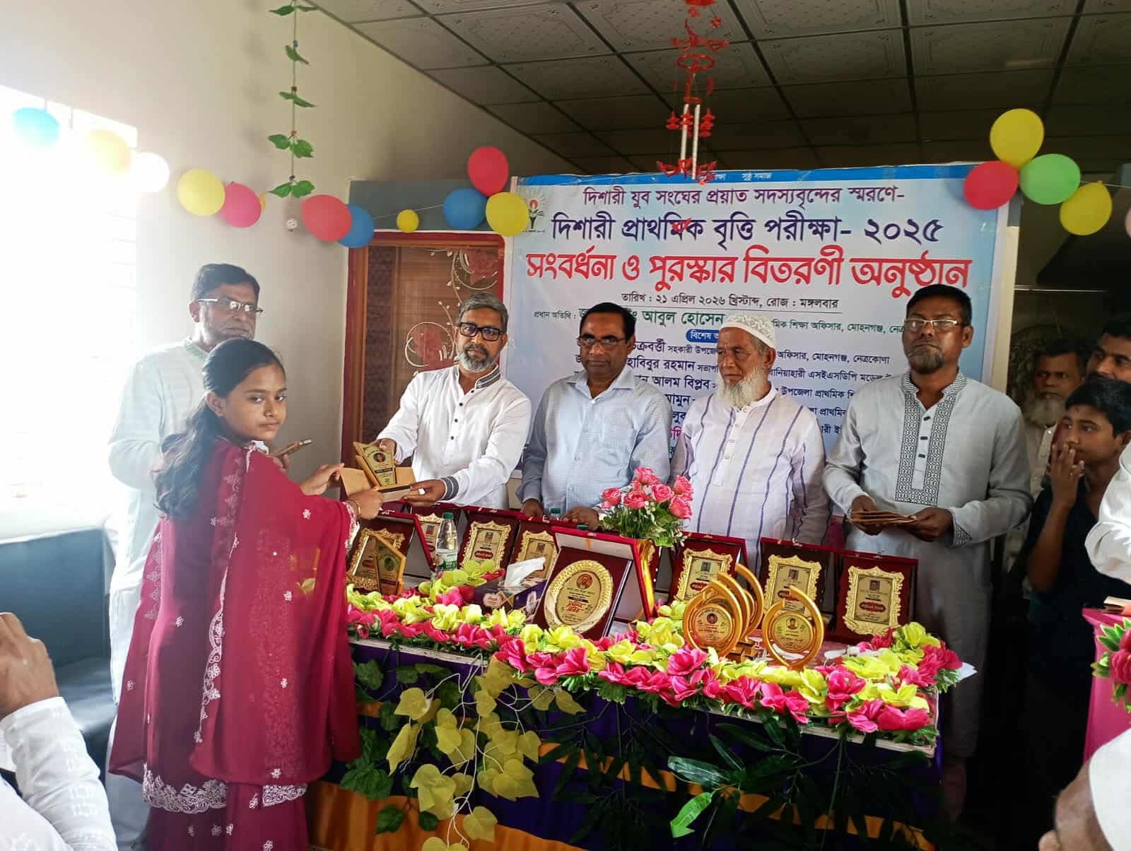 মোহনগঞ্জে দিশারী যুব সংঘের উদ্যোগে উপজেলার বড়তলী বানিহারী ইউনিয়নের ৯ টি প্রাথমিক বিদ্যালয়ের বৃত্তি প্রাপ্ত শিক্ষার্থীদের কে সংবর্ধনা দেয়া হয়েছে। সেই সাথে তাদের মাঝে পুরস্কার বিতরণ করা হয়েছে।