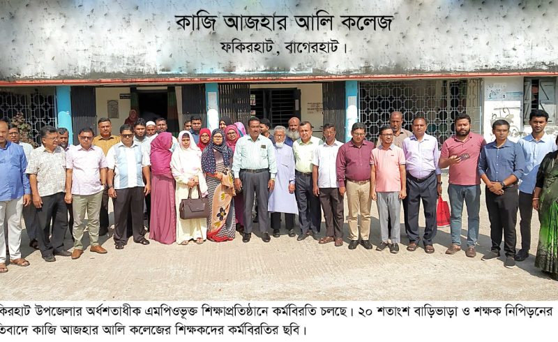 পাঠদান বন্ধ, হামলার প্রতিবাদ ও বিশ শতাংশ বাড়িভাড়ার দাবীতে ফকিরহাটে কর্মবিরতি